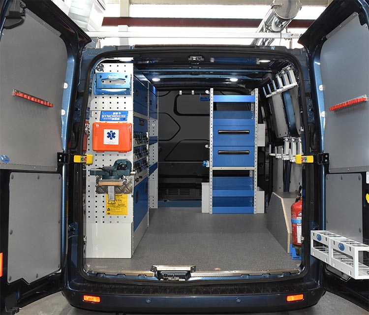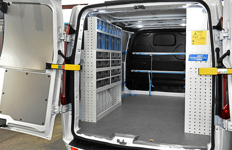 Líneas cuadradas y regulares, zona de carga amplia y espaciosa, consumos reducidos y buenas prestaciones energéticas. Cuando salió al mercado, el Ford Custom - “Van of the year 2013” - fue enseguida apreciado por los artesanos y técnicos que buscaban un vehículo comercial con el que desplazarse de una obra a otra. El nuevo vehículo fabricado por la casa fabricante americana permite, de hecho, ahorrar en carburante, guardar dentro de la zona de carga grandes cantidades de mercancías y materiales, e instalar con facilidad los muebles, los accesorios y i revestimientos para furgoneta fabricados por Syncro System. En Guadalajara, sede de la filial mexicana de Syncro System, encontrarás operadores competentes y una gran variedad de artículos, como estanterías, armarios, contenedores, maletines, cajoneras y paneles con las cuales podrás crear, dentro del Custom, un verdadero taller, ordenado, bien equipado y funcionante. Los ejemplos que aparecen en las fotos de aquí arriba, son la demostración de lo numerosas que son las soluciones de equipamiento posibles para tu furgoneta Ford Custom.