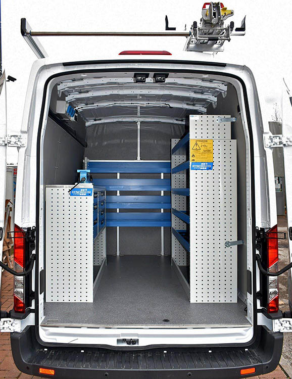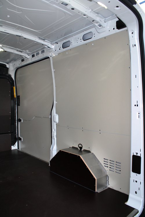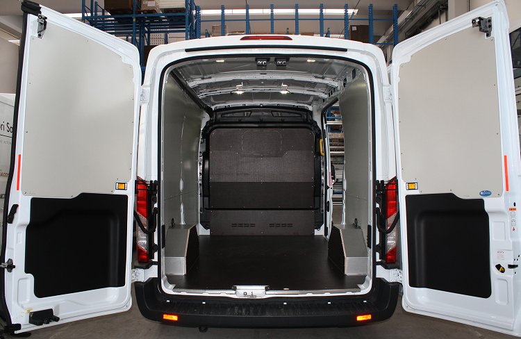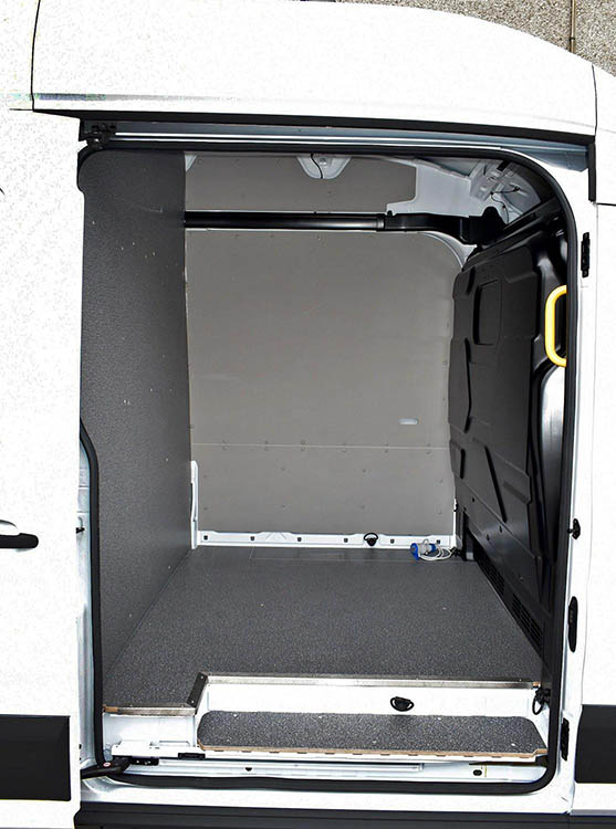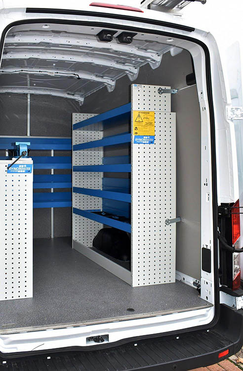 Con el fin de facilitar el montaje del equipamiento y proteger la carrocería interna del Transit 2014 de las abolladuras y arañazos causados por las caídas o desplazamientos del material transportado, Syncro ha creado protecciones ad hoc para el receptáculo de este furgón Ford. En primer lugar están las robustas plataformas de madera o aluminio, que refuerzan el suelo del receptáculo de carga. Para las paredes laterales, Syncro propone en cambio unos paneles también en aluminio damero o en chapa barnizada ya cortados y agujerados, listos para su montaje. Completan la gama los protectores de pantalla, los protectores de rueda, las coberturas para las puertas y las rejillas para cristales.