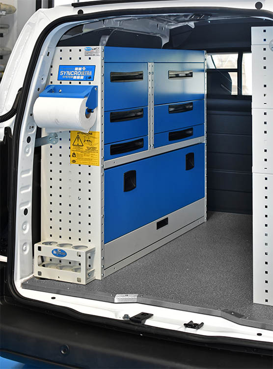 En Syncro System de Guadalajara encuentras todos los elementos necesarios para equipar el Partner en base a tus necesidades. Con estanterías, cajoneras, superficies de trabajo, contenedores, accesorios para furgonetas a medida, puedes transformarlo en un pequeño pero bien equipado laboratorio sobre cuatro ruedas.
